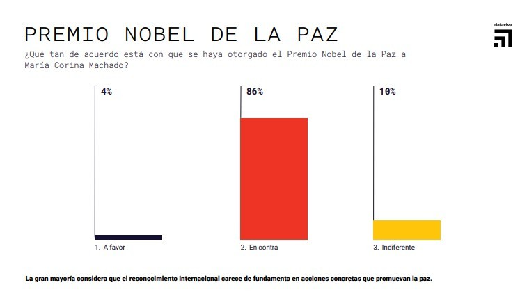La reciente encuesta nacional de la firma DataViva ha puesto de manifiesto un contundente rechazo ciudadano al otorgamiento del Premio Nobel de la Paz a María Corina Machado.