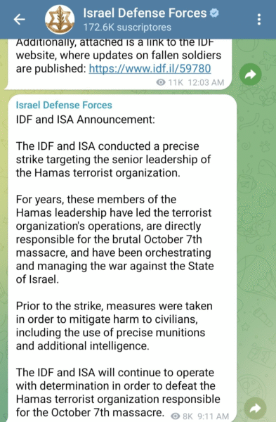 Según una fuente del medio Al Jazeera, la delegación de Hamás recibió un ataque durante una reunión en Doha, la capital de Catar, proveniente de las Fuerzas de Defensa de Israel (FDI), quienes anunciaron haber lanzado un ataque contra altos mandos tras haber salido a la luz los reportes de explosiones en Doha.