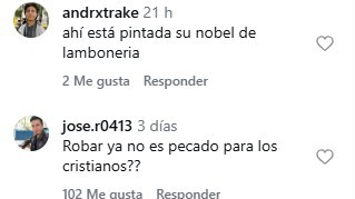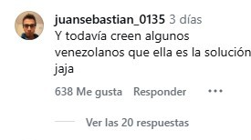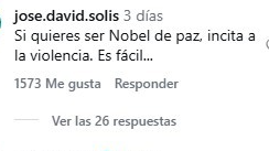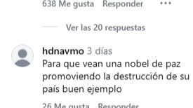 Estas declaraciones han generado una ola de comentarios encontrados en las redes sociales, donde diversos usuarios cuestionan la coherencia entre su galardón y su postura política actual. Algunos usuarios señalaron una contradicción en su discurso, afirmando que «la paz se da haciendo la paz, no promoviendo la guerra» y que es una «vende patria». Además, la acusaron de promover «el robo de su propia patria» al apoyar la incautación de recursos nacionales.