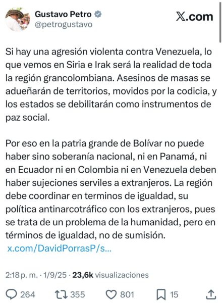 El presidente de Colombia, Gustavo Petro, se pronunció sobre la situación en Venezuela a través de su cuenta en la red social X.
