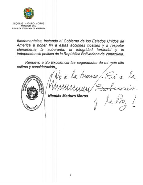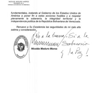 En la carta, Maduro recordó que Venezuela ha sido objeto durante años de lo que calificó como “una agresión sistemática de EE.UU.”, que incluye: